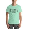 It’s made in America by Bella Canvas. This particular shirt feels soft and lightweight, with just the right amount of stretch. It’s comfortable and flattering for both men and women.