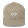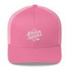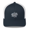 The hat itself has 6 panels and a mesh back. Trucker style. Classic style with a comfy fit.